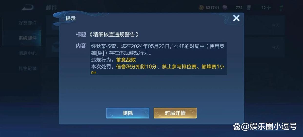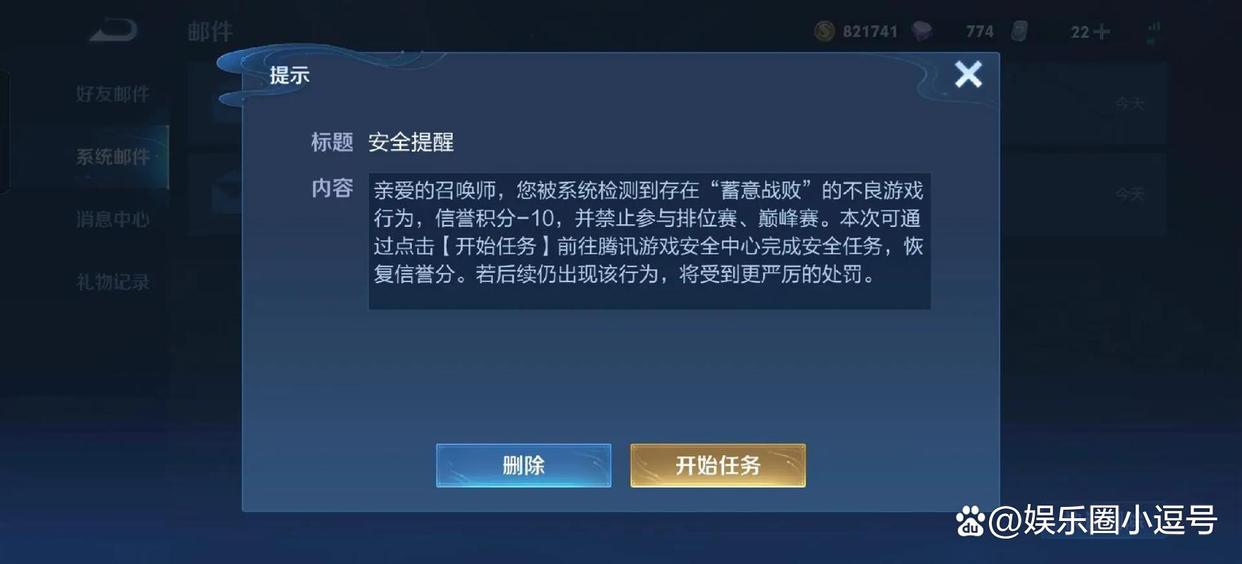 演員行為:指惡意買分或賣分的行為。 這種行為嚴重破壞了游戲的競技平衡,是信譽積分制度重點打擊的對象。