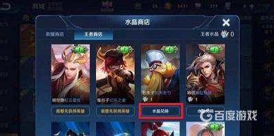 2、點擊“水晶商店”,點擊指定英雄或皮膚選擇“水晶兌換”即可。