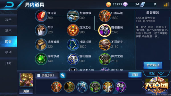 出門裝:出門裝選擇紅瑪瑙或是布甲,提高自己的存活率,同樣為中期合成紅蓮斗篷做準備。