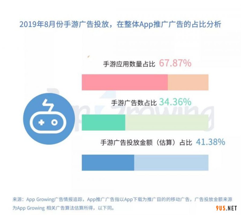 8月份,正值廣大中小學(xué)生暑假期間,炎炎夏日,倚在沙發(fā)上喝著快樂水吹空調(diào)玩游戲簡直再愜意不過了。那么整體手游買量市場趨勢(shì),是否也呈現(xiàn)明顯的“暑假”效應(yīng)?是否有很多主推學(xué)生市場廣告主重金投放?吸量素材有哪些?App Growing以2019年8月1日-8月31日所追蹤的移動(dòng)廣告投放情報(bào)為依據(jù),發(fā)布《2019年8月份手游買量市場分析》,報(bào)告主要包括以下要點(diǎn):①手游買量市場概覽:8月份,App Growing共監(jiān)測到4000多款手游、投放超過22萬的移動(dòng)廣告,手游廣告投放金額(估算)占整體App推廣廣告投放總金額的41.38%。②手游買量渠道洞察:盤點(diǎn)8月份手游廣告主所青睞的Top10廣告平臺(tái),短視頻平臺(tái)快手名列其中。③廣告投放風(fēng)云榜盤點(diǎn):廣告投放總金額(估算)手游排行榜Top20盤點(diǎn),有7款為傳奇游戲,奇跡類游戲《精靈盛典》位居榜首。④廣告投放新游榜盤點(diǎn):廣告投放總金額(估算)新投放手游排行榜Top20盤點(diǎn),《魔女學(xué)院》等多款二次元手游強(qiáng)勢(shì)推廣。⑤8月份各主流廣告平臺(tái)仙俠、戰(zhàn)爭、魔幻類高曝光量廣告盤點(diǎn)。說明:本報(bào)告以投放廣告數(shù)作為衡量廣告投放力度的依據(jù),廣告投放數(shù)不完全等于其實(shí)際廣告消耗,僅供參考。本報(bào)告提及的廣告投放金額來自于App Growing基于各平臺(tái)的cpm成本及廣告投放時(shí)間等相關(guān)綜合因素估算而得。一、手游買量市場概覽1)在App下載廣告中,手游廣告投放總金額(估算)占比41.38%8月份,App Growing共監(jiān)測到4000多款手游投放廣告,相比7月份投放手游的數(shù)量有明顯增加,但手游廣告投放金額(估算)占整體App推廣廣告投放總金額的41.38%,同比7月份(48.61%)反而有輕微下降,推測整體投放力度并沒有顯著增加。